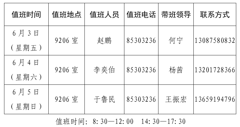太阳成集团tyc151cc端午节值班安排