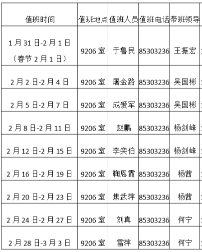 太阳成集团tyc151cc寒假值班安排表