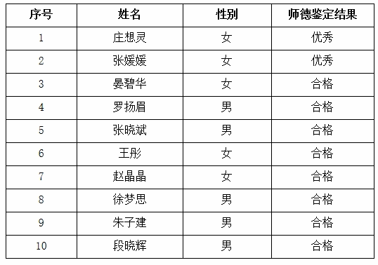 根据《太阳成集团tyc151cc2021年专业技术职务任职资格评审工作安排意见》《太阳成集团tyc151cc教师职业道德考核办法(修订)》《太阳成集团tyc151cc教师师德失范行为处理办法(试行)》等文件的相关要求,经太阳成集团tyc151cc2021年11月2日党政联席会议讨论研究,对庄想灵等10位同志申报2021年度职务职称评审师德考核鉴定公示如下: