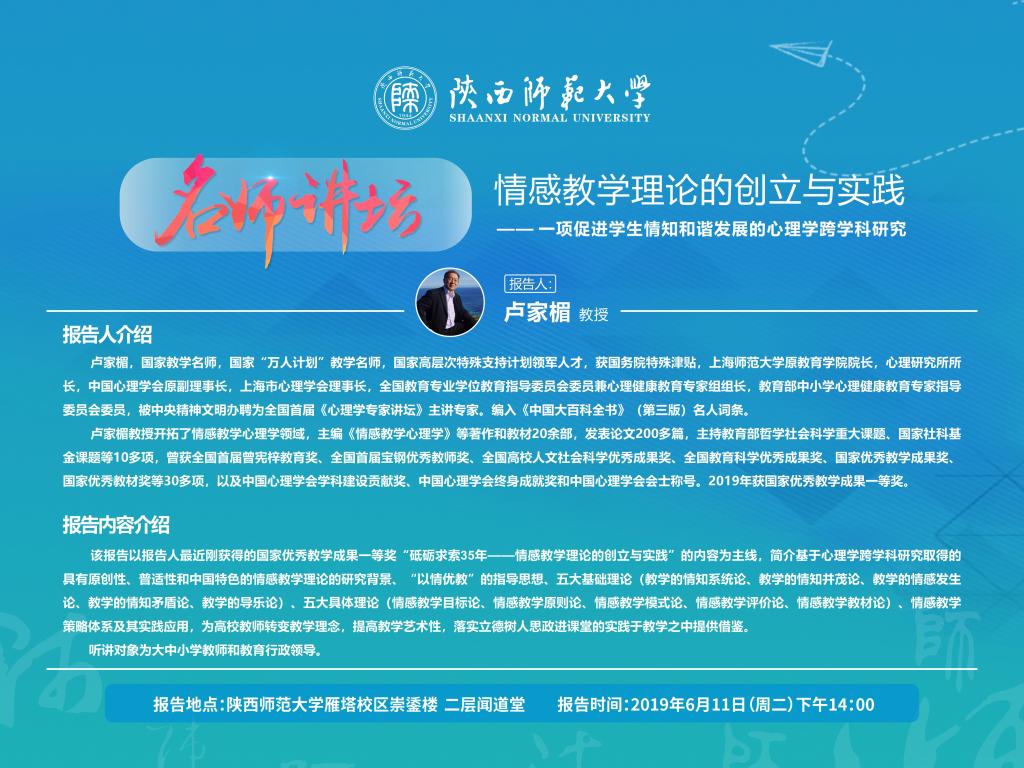 名师讲坛:情感教学理论的创立与实践(预告)