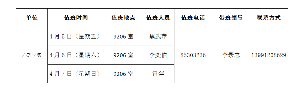 太阳成集团tyc151cc2019年清明节值班安排表