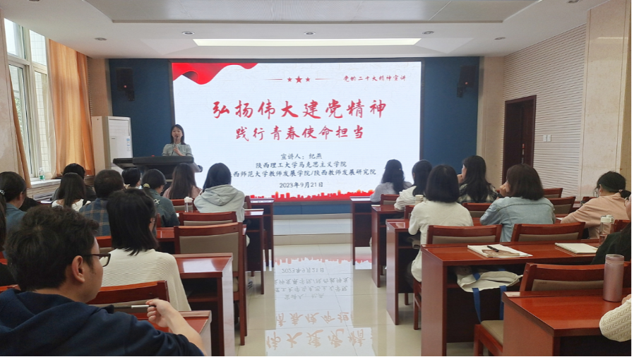 为做好研究生新生入学教育,引导广大研究生立志做有理想、敢担当、能吃苦、肯奋斗的新时代好青年,积极响应研工部开展博士生宣讲活动、发挥博士生“头雁效应”的工作要求。2023年9月21日下午,公司邀请邀请太阳成集团tyc151cc教师发展公司(陕西教师发展研究院)教育博士,陕西理工大学马克思主义公司纪燕老师开展了“弘扬伟大建党精神,践行青春使命担当”的主题宣讲。公司2023级研究生党员和入党积极分子参加了本次宣讲会。