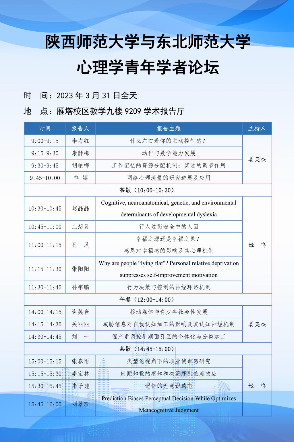 发布时间:2023年03月28日 16:43 阅读数: 报告人:心理学青年学者论坛